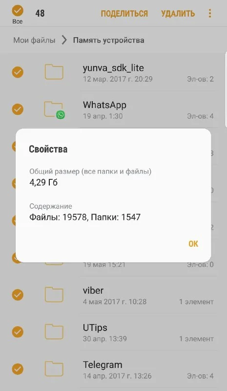 Есть знатоки по Андроиду? Как может быть занято 29 гб, если все папки вместе с фотками и скрытыми фа...