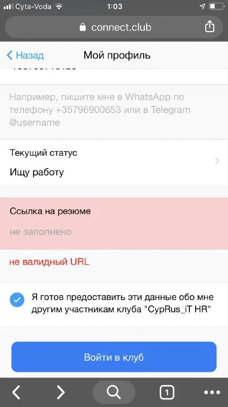 Ну для регистрации в connect club нужно резюме ссылкой