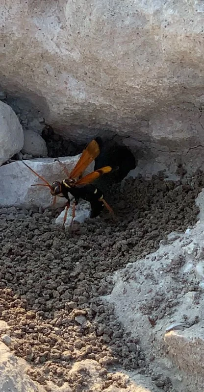 На днях так же наблюдал как оса-наездник (паразит) - поймала паука и сделала из него зомби-холодильник для своих личинок. И копала яму для них.