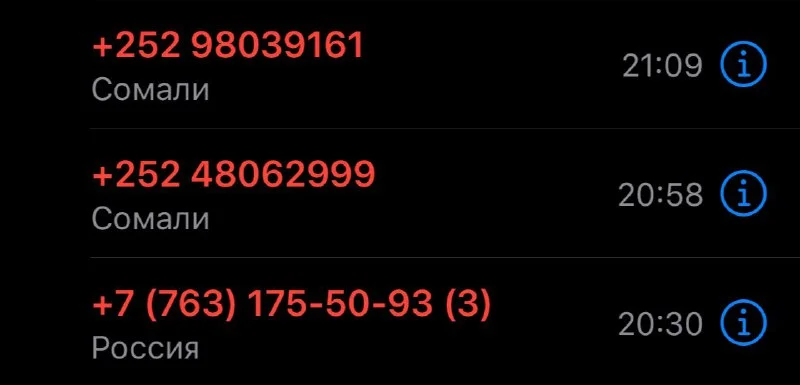 Тоже сегодня в полдесятого был пропущенный из Сомали, не перезвонил