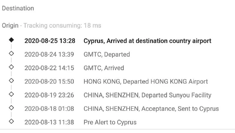 Судя по трекингу - она застряла ещё до скана в аэропорту Ларнаки.