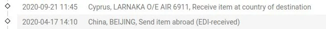 Т.е. посылка не попала еще в работу в Почту Кипра и застрала где-то между зоной разгрузки и таможней (