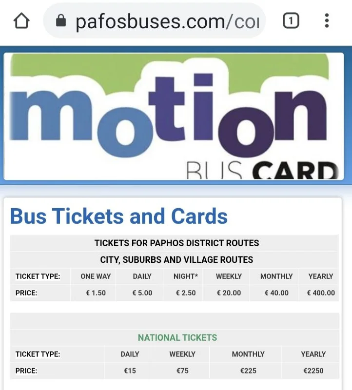 В Пафосе разовый был €1, суточный анлим €2.