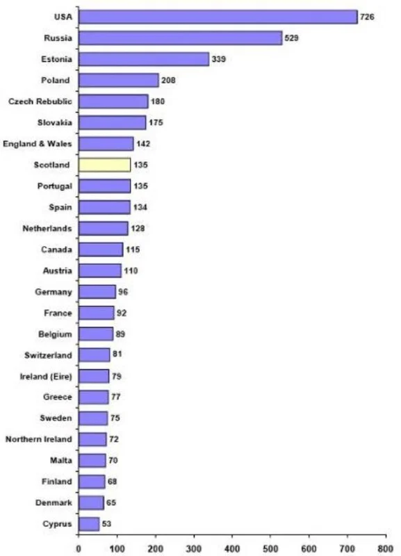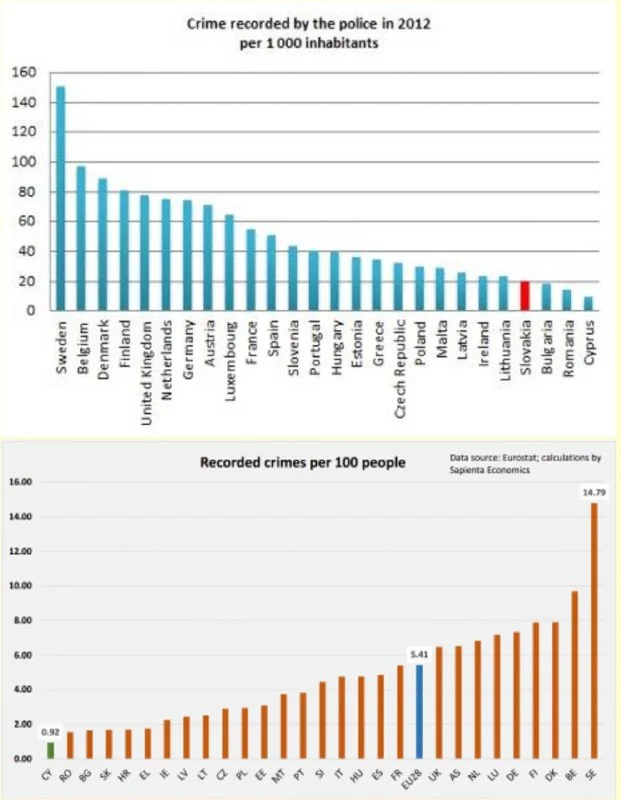 На Кипре самый низкий уровень преступности в Евросоюзе и пятый по благополучию криминогенной ситуации в мире. Самая низкая доля заключенных среди населения в ЕС и в 10 раз меньшая, чем в России.