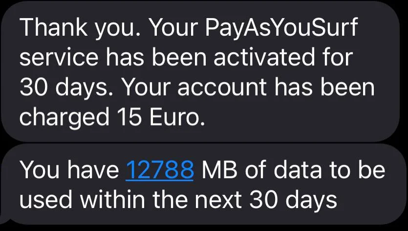 на номер 6040. Снимают €10, дают 2 гига на 30 дней. Но! Если в тот же день, когда заканчивается (либо срок либо обьем) снова берешь data on month, то дают уже 3 гига. А сейчас у них некая акция, мне вот 6 гиг крайний раз дали.