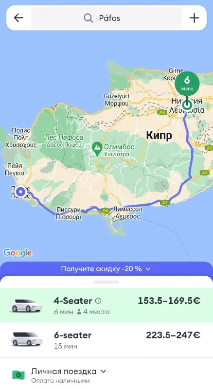 Доброй ночи) подскажите пожалуйста, где и сколько стоит взять такси из Никосии в Пафос?