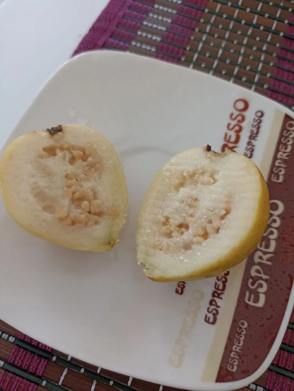 он ещё недозревший или такой сорт? у гуавы красная сердцевина, вроде