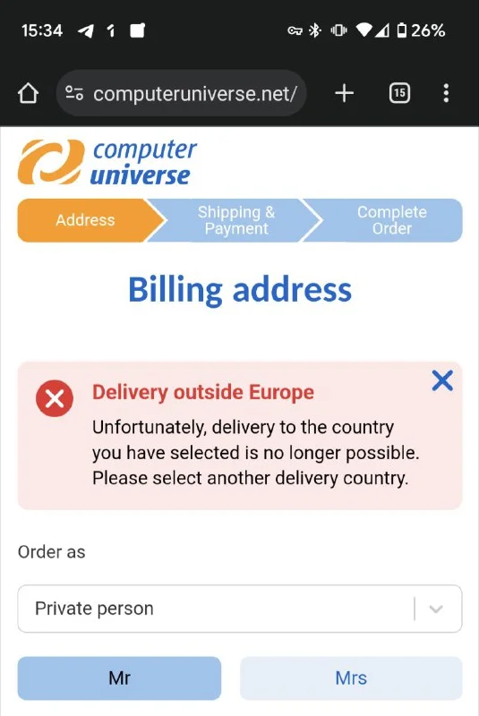 Кто знает, давно ли computeruniverse перестал слать на Кипр? Там в вариантах только пять стран около...