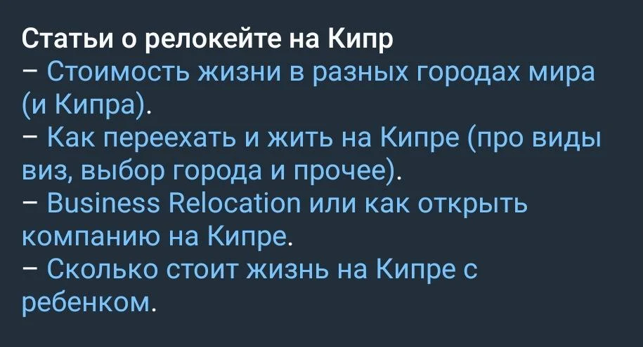 И дал ссылку на пост со статьями про жизнь на Кипре.