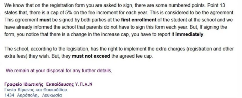 В Ларнаке в прошлом году эта буча была, они успешно объявили "новыми учениками" детей, идущих из прескула в 1й класс и выкатили существенное повышение.