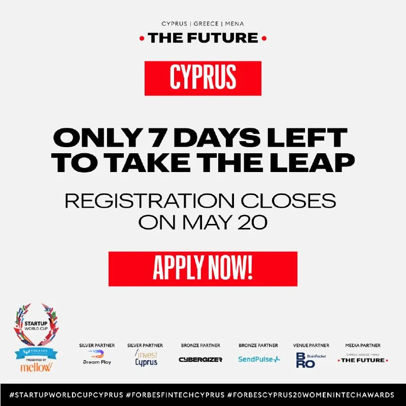 The countdown to innovation is on — registration for Startup World Cup 2025 Cyprus Finals closes May 20.