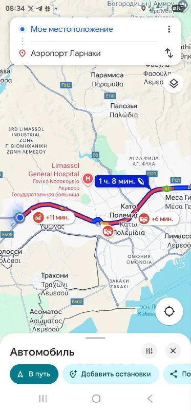 В сторону от Пафоса до Като Полемидии в это время суток почти всегда так, плюс несколько аварий на скриншоте.