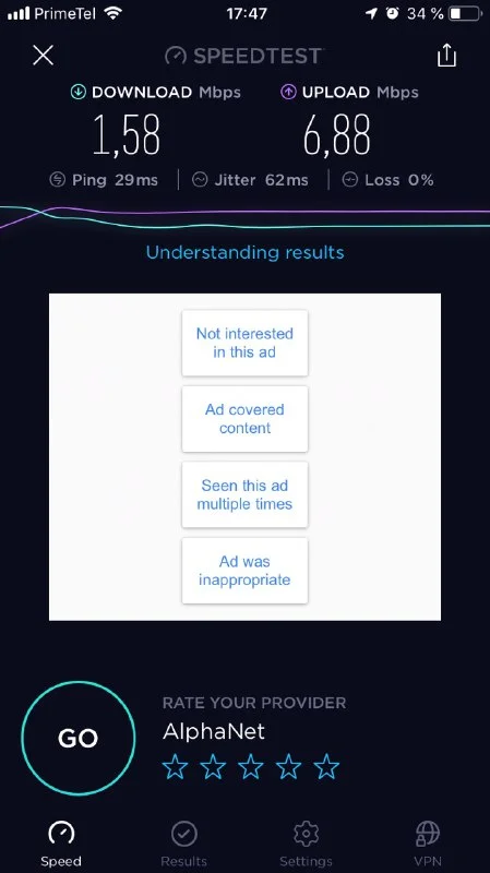 Upload: 46.63 Mbit/s