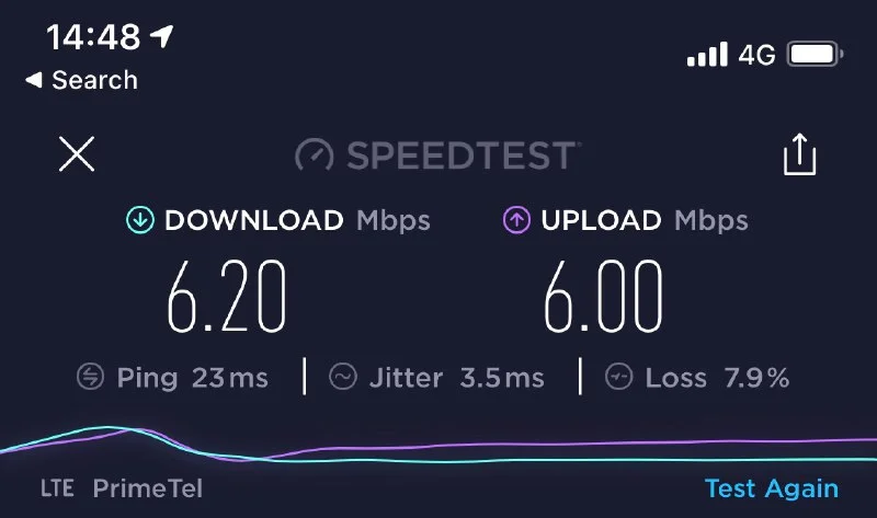У меня при смене 3G на 4G у primetel скорость вообще не поменялась. Как было 5 на скачку так и остал...