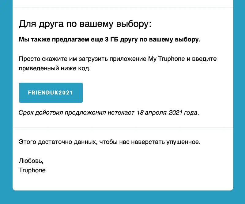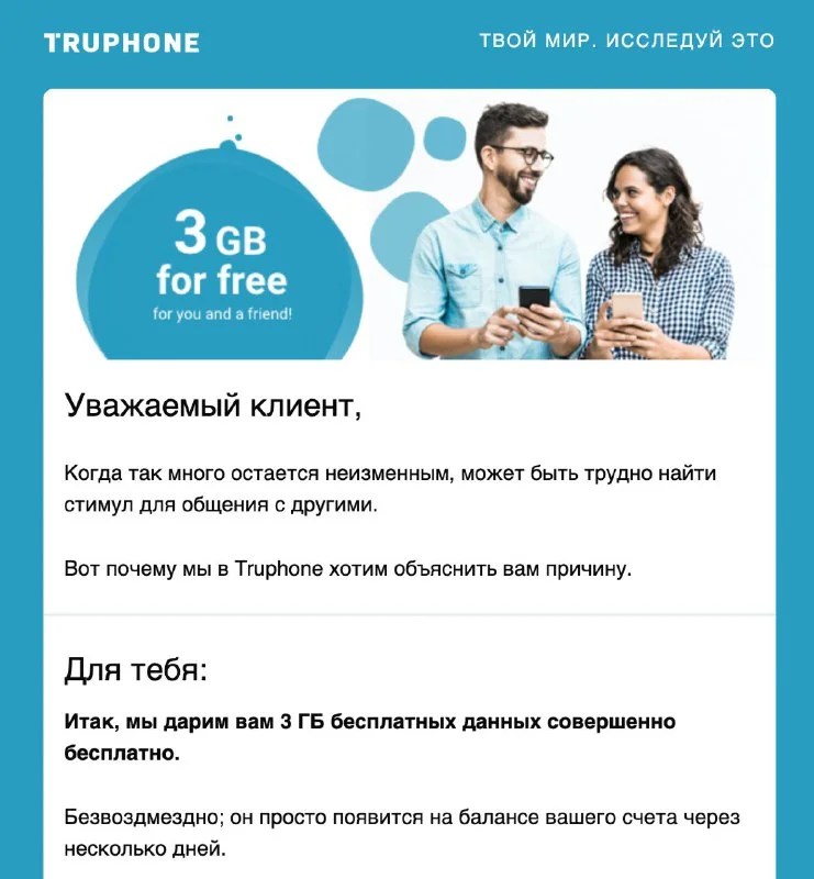 у кого есть поддержка е-сим, Труфон прислал недавно письмо про бонусы, можно пользоваться
