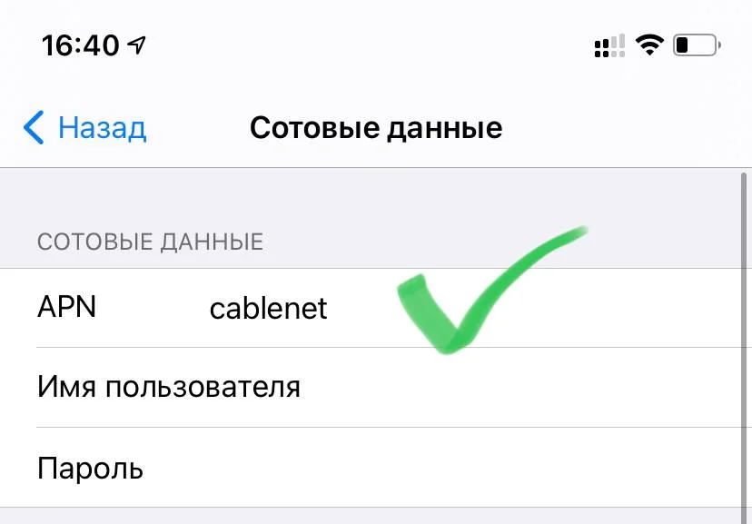 в сети 3G сим-карта Кабельнет регистрируется, голосовые вызовы идут, но инет не работает. только в LTE. APN cablenet прописал.