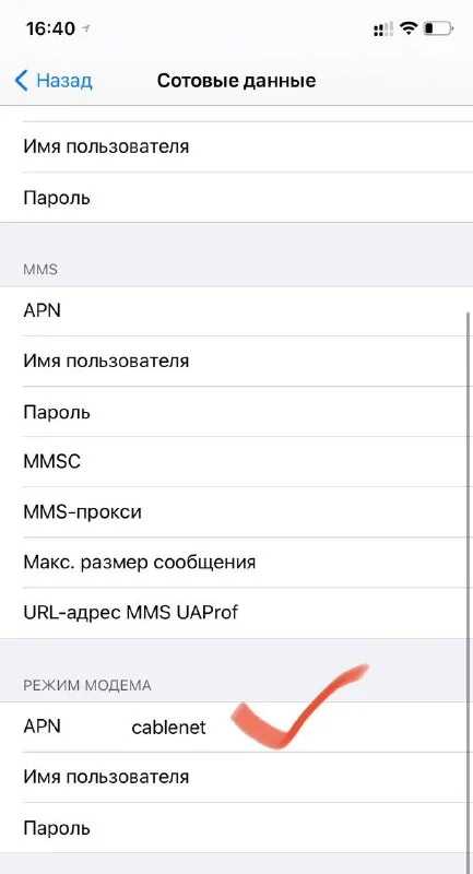Интересная история, у меня на старом 6s+ и у товарища на X режим модема с симкой кабеля как таковой отсутсвует. После замены симки на прайм, к примеру, возможность раздавать снова есть.