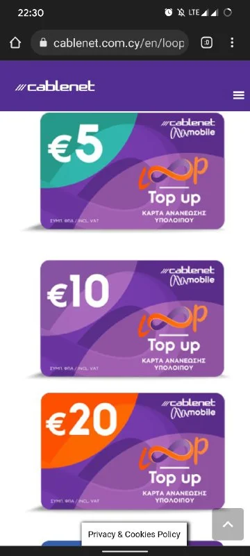 Здравсвтуйте! Подскажите, где в Ларнаке можно купить Purple Loop Top up card? Заезжал в несколько ки...