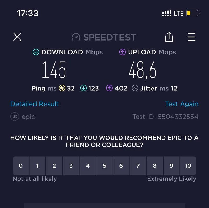 А какая скорость "Unlimited" 5G у Epic? Если там 100+ за 30 евро, то тоже интересно