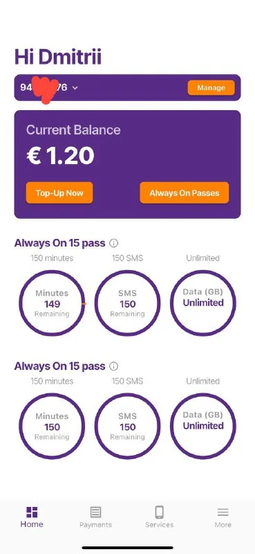 Хотел два препейд номера кабельнета пополнить, один пополнил на 7 и активировал pass и второй пополнил на 7 и активировал pass, а их дурацкое приложение активировало два pass на одном номере 🤯