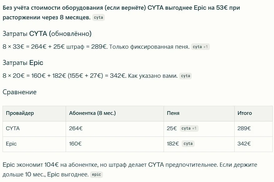 Насколько стабилен epic fiber по сравнению с cyta? Выбираю между ними сейчас.