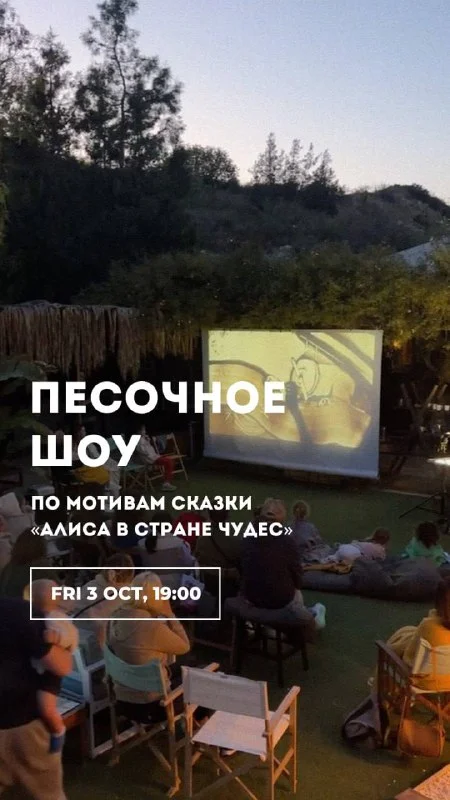 На большом экране — театр песка и света по мотивам сказки «Алиса в Стране чудес» 🐇