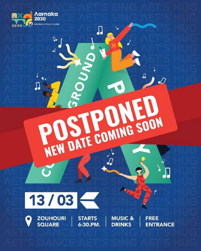 Вечеринка в честь избрания Ларнаки культурной столицей Европы 2030 откладывается. Новая дата будет объявлена в ближайшие дни.