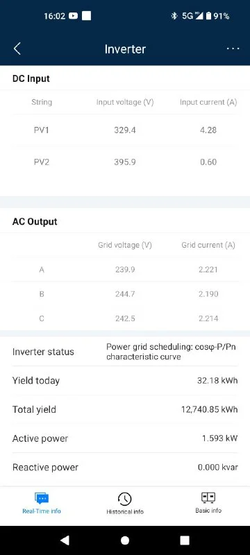 если перемножить и сложить то получится мощность которая и в меню инвертора и в аппе, тут все правильно