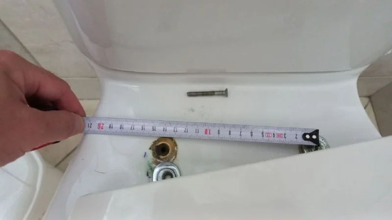 Логично измерять расстояние между отверстиями в самом унитазе и их диаметр. )