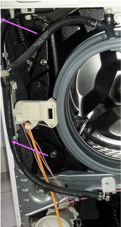 Трубка сверху прям в резинку перед барабаном подключена сверху? Вау!