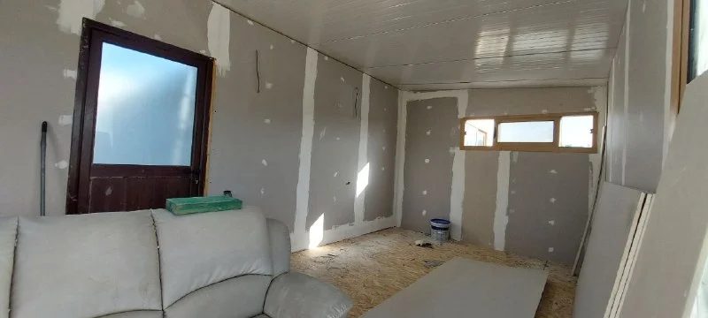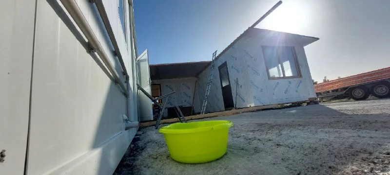 Конструкция самая дешёвая, без изоляции, утепления. Сознательно брали, чтобы перекантоваться год до ключей.