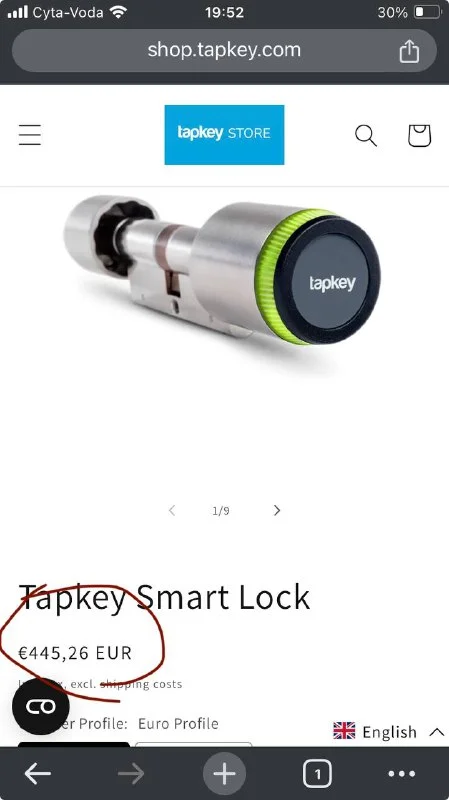Мы такой купили у адамидиса, открывает с телефона и поддерживает токены. Но стоит как дверь - у местных 600 евро