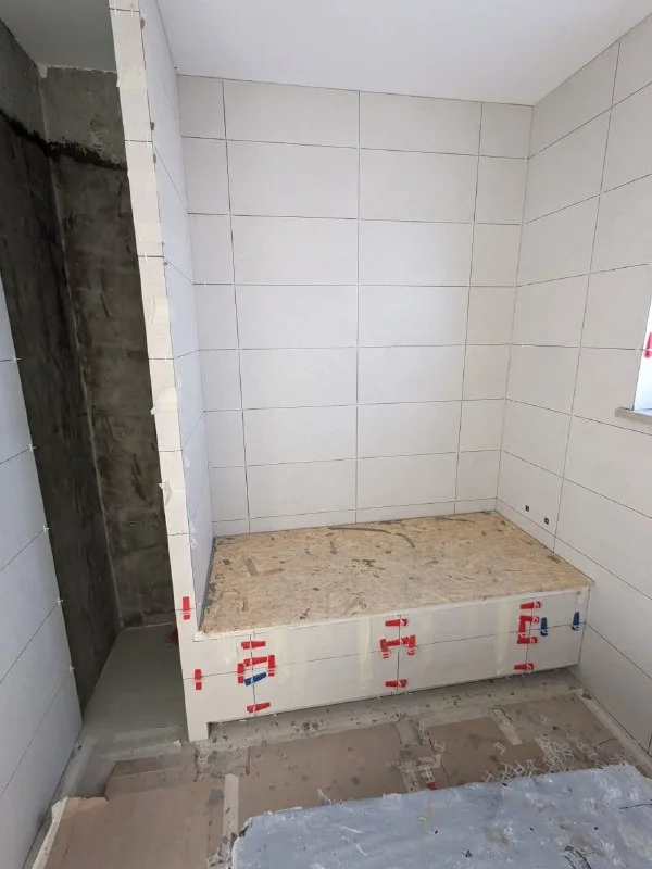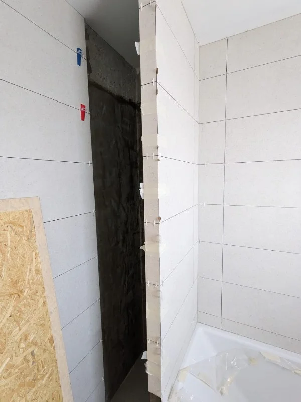 После нерадивого мастера пришлось снимать плитку вокруг окна и душевой и все переделывать, для сравненения фото угла после и до переделки (последнее фото) Могу смело рекомендовать!