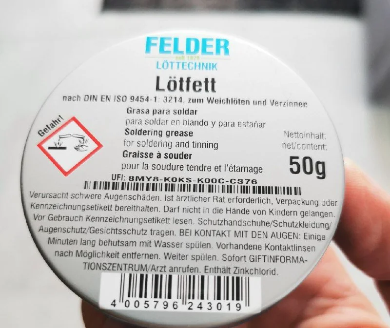 Что-то на фото не видно канифоль. Если что, в итоге я купил в мр. Бриколадж пасту. Работает хорошо. Писали, что может сгнить быстро из-за кислоты, пока, за пару дней, не сгнило