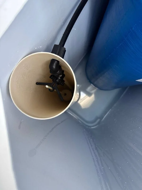 Да, похоже бак для рассола - именно белый цилиндр. Не очень понятно что там за поплавок, и почему в нём не видать соли. По картинке уровень соли в нём должен быть заметно выше уровня рассола, чтоб рассол получался насыщенным.