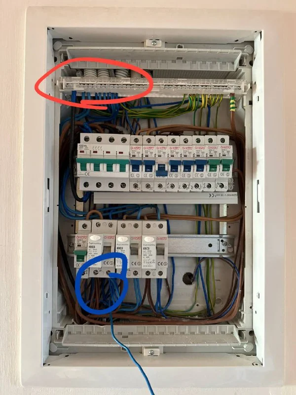 Помогите разобраться пожалуйста! Почему когда я подключаю прибор (умный выключатель, но и лампочка так же себя ведет) минусом к минусовой плашке (красная), то выбивает УЗО, а когда к минусам на самом УЗО (синее), то все окей?