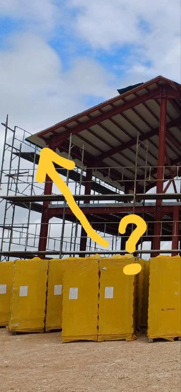 Это обычная скатная кровля, plywood по металлическому каркасу, с нанесённой гидроизоляцией. Готовое к утеплению основание.