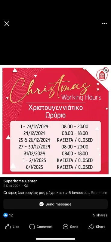 Суперхоум вроде работает, по крайней мере была бумажка на входе с расписание првздников, и вроде как до 6ти работает.