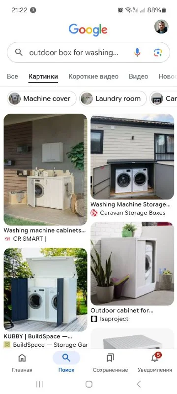 Подскажите, из чего сделать шкаф на балконе под стиралку и сушилку? Чтобы выглядело симпатично и дождя не боялся
