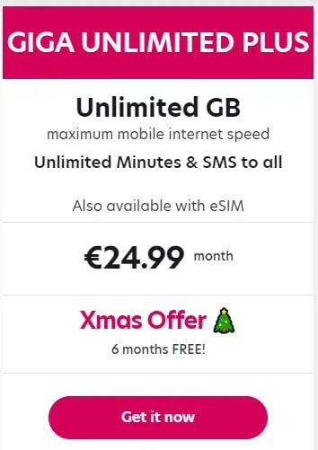 я плачу 20 евро GIGA SMART XL и там 8гб на макс скорости, но там сейчас вроде как есть тариф за 25 анлим полный