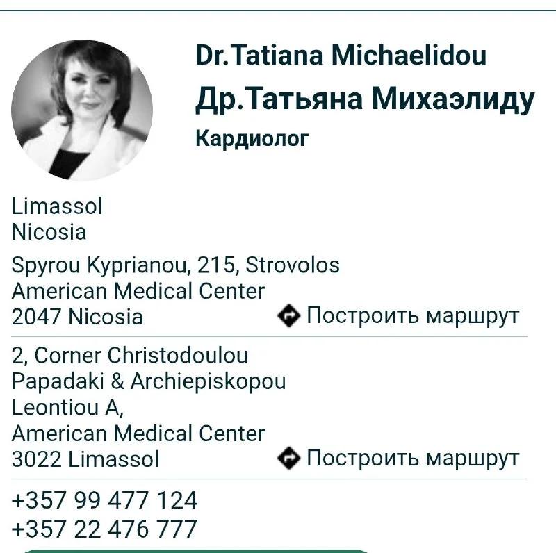Добрый вечер, подскажите пожалуйста где в Никосии можно кардиограмму сделать желательно с русскоязыч...