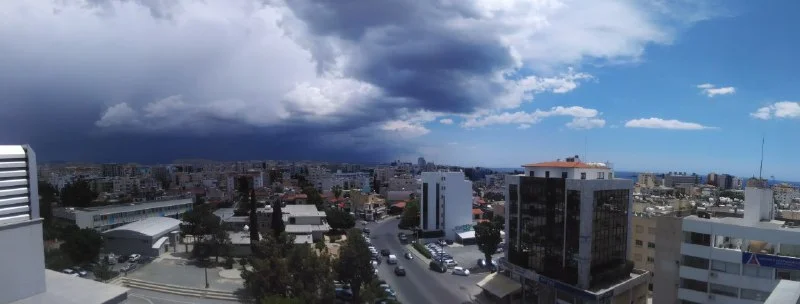 Вообще днём при ярком кипрском солнце молнии ярко заснять - не просто. Чтобы была выдержка в 1 секунду хотя бы, я поставил на объектив регулируемый ND-фильтр на максимально тёмном уровне, диафрагму закрыл до 22, и ISO зажал до L100. У этой камеры есть интервальная съёмка, но минимальный интервал - 1 секунда между кадрами.