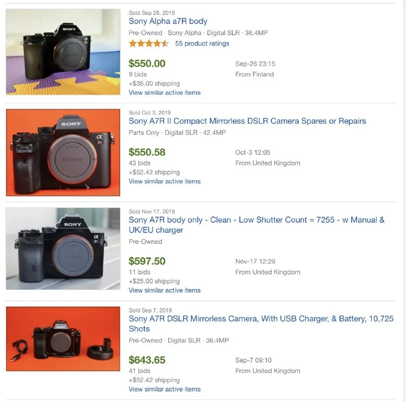 первая A7R стоит 500-600 евро на eBay