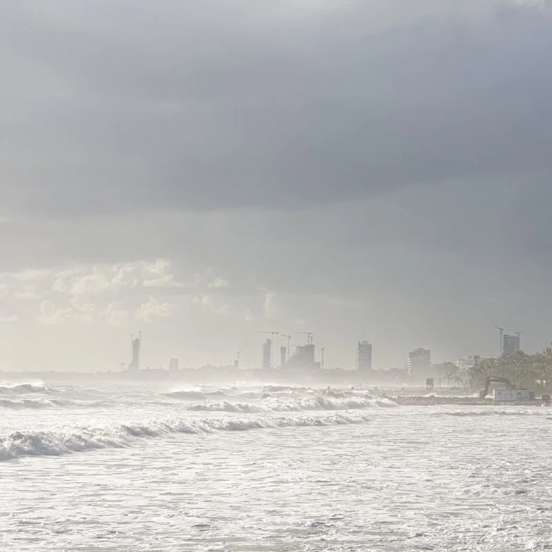 Небоскрёбы Лимассола в штормовой дымке.