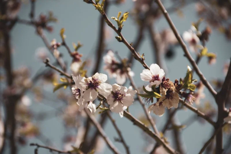 И розовые цветы персика.