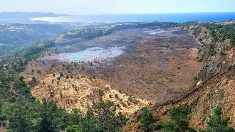 Закопанный котлован шахты Лимни (раньше тут была монументальная яма почти километр в длину и 100 м в глубину). Интересные камни и текстуры. 👍