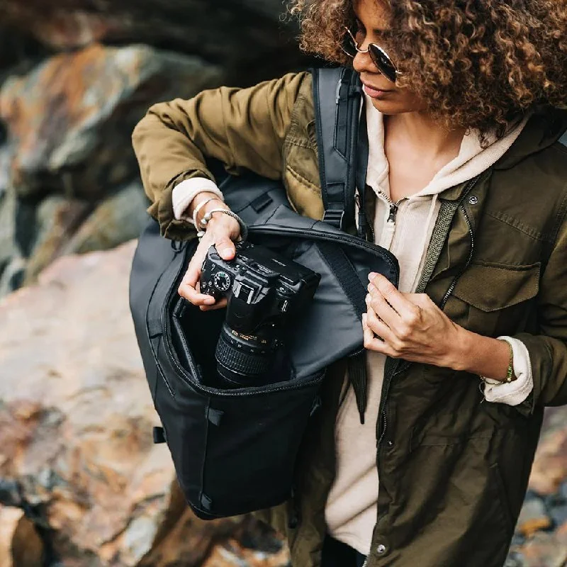 Есть много удобных фичей - можно достать/убрать камеру, повернув рюкзак через плечо, отличный отдел для ноутбука и/или планшета, хорошая водостойкость, и много карманов разных размеров. Более подробную информацию по рюкзаку можно посмотреть тут