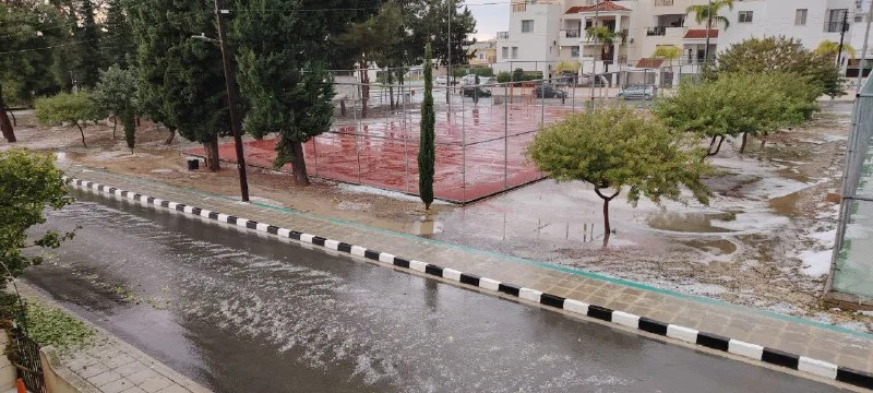 У нас нет града в корал бей. Только ливень и горящая пальма от молнии