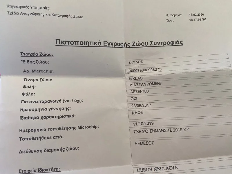 Ребята, доброе утро! Подскажите, пожалуйста, как правильно тут зарегистрировать собаку. У нас есть микрочип и вот такая бумажка. Что дальше? ...вроде как идти в муниципалитет?.. мы в Лимассоле, если что