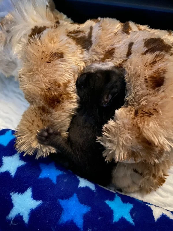 В итоге забрали к себе. Оказалось, что ему было от силы 2 дня. Если бы не забрали - замерз бы или его сожрали коты, так как мама бы точно уже не вернулась. Сходили к ветеринару, сказала сильный нормальный котенок. Купили смесь, грелку, поселили в коробку. Ест, в туалет ходит стабильно. Но у нас 2 собаки, которые хотят сожрать кота и постоянно вокруг коробки дежурят, и работа, совмещать очень сложно, я уже начинаю ненавидеть всё вокруг. Если кто-то готов откормить и вырастить черного котэ, дайте знать. Или если вы знаете того, кто умеет и хочет вырастить мелкого, тоже дайте знать.
